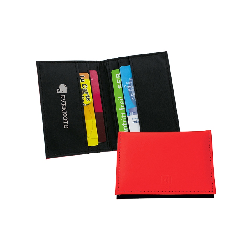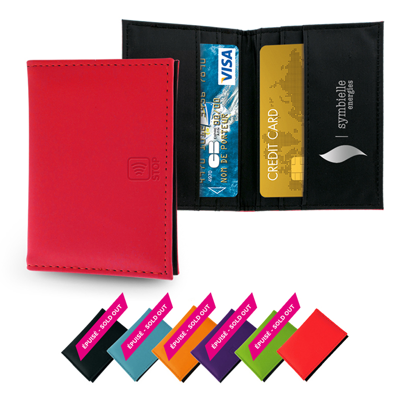 On garde sa carte de crédit à l’abri du paiement sans contact non voulu grâce à la protection anti RFID. Coloris noir, bleu clair, orange, violet, vert. Marquage 1 couleur argent conseillé et par défaut