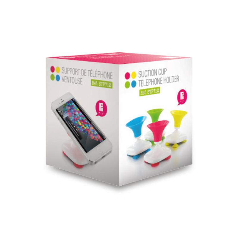 De la salle de bain au bureau, il permet de fixer son smartphone partout ! Support smartphone OU gps à ventouses. Coloris bleu, rose, vert, jaune. Livré en boîte individuelle illustrée. Marquage sur la base en 1 couleur.